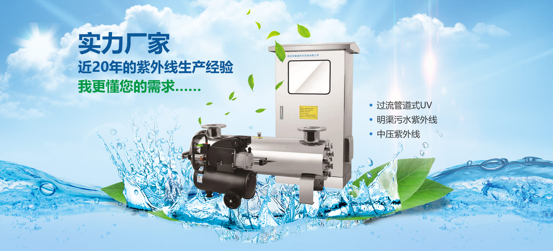市政供水紫外線消毒器、凈水紫外線消毒器、食品飲料紫外線消毒器、二次供水紫外線消毒器、自來水紫外線消毒器、游泳池紫外線消毒器、農村水改紫外線消毒器、水箱消毒器、自動清洗紫外線、污水紫外線消毒器、管道/過流式紫外線,、明渠污水紫外線、中壓紫外線消毒器